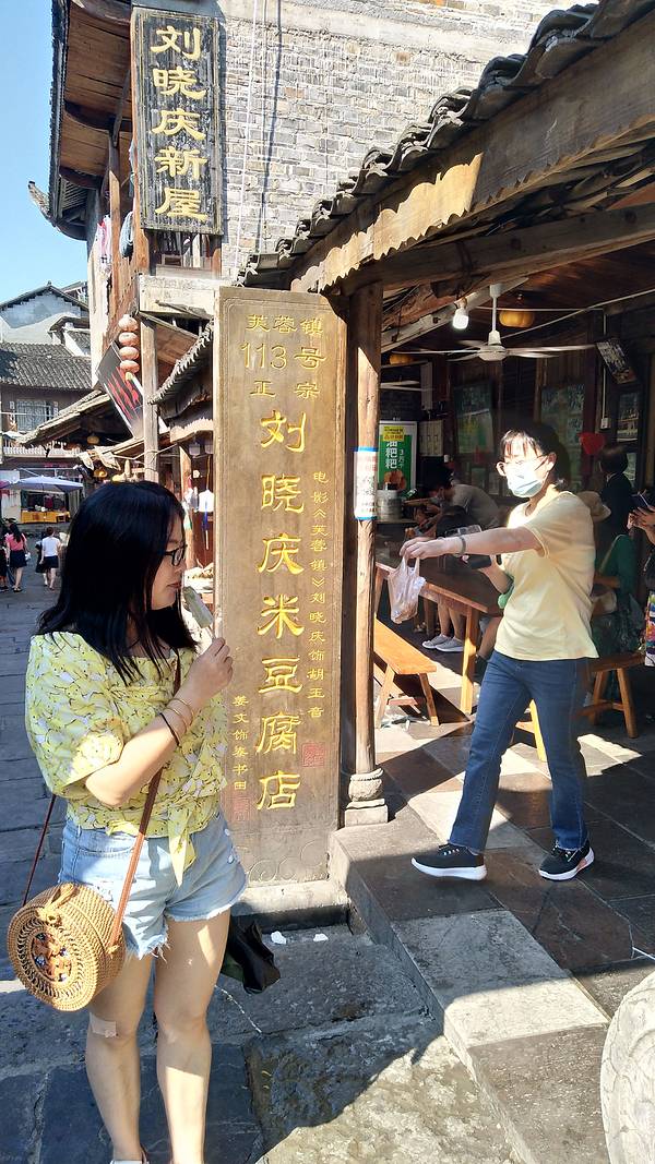 王村也许没有多少人知道,但芙蓉镇却无人不晓。看电影就知道刘晓庆,知道刘晓庆就知道《芙蓉镇》,只要你到了芙蓉镇就看见满街的刘晓庆米豆腐。王村虽然历史悠久,但直到电影《芙蓉镇》的拍摄,才闻名全国,故王村又名“芙蓉镇”,发财全靠芙蓉镇”。住在王村的百姓几乎都是土家族,看到他们在服饰等方面都已汉化,但他们还是保持了相当多的传统民族习惯。土家族人自称“毕兹卡”。湘西民俗风光馆坐落在王村码头上边,馆内的展品介绍了土家族的民俗,以及体现民俗特色的各种雕品及家具实物,还有土司王塑像、土家祟拜的神像等等枯水季节,瀑布小了很多镇中113号老宅曾经是《芙蓉镇》拍摄刘晓庆卖米豆腐的场景,米豆腐2元一碗,味道酸辣。113号老宅曾经是《芙蓉镇》拍摄刘晓庆卖米豆腐的场景芙蓉镇算是这次旅游的最后一站吧,中午就回程,上高速直奔长沙。
