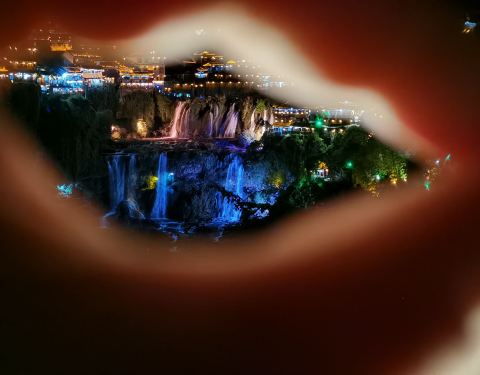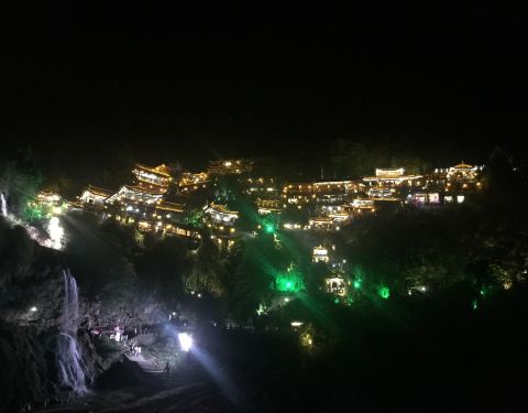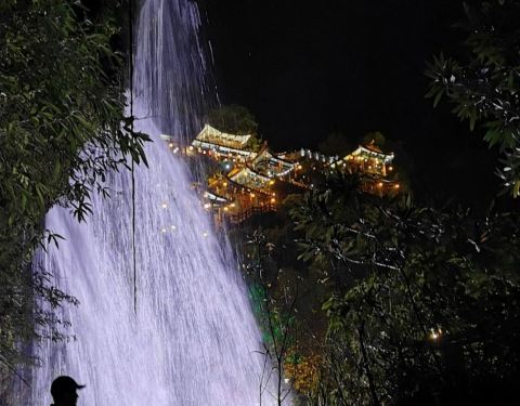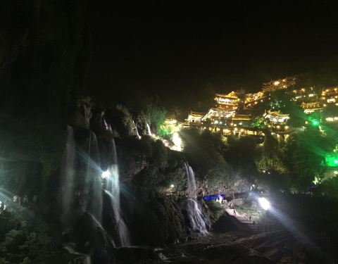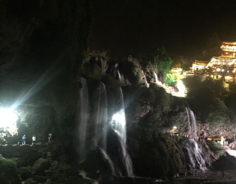 晚上去的,没有收门票。灯光映衬下的瀑布可以看看,是王村的特别之处