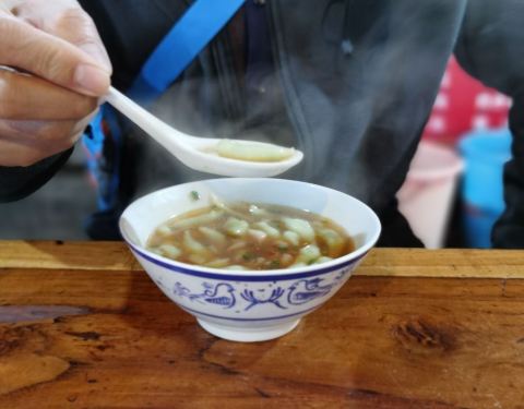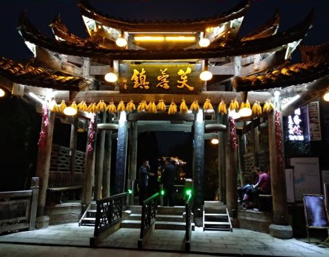 晚上去的,没有收门票。灯光映衬下的瀑布可以看看,是王村的特别之处。牌坊下五元一碗的咸味米豆腐吃了一碗,微信支付的时候以为是都是十元,老板娘说给错了,就这多给的五元钱拿了一个五元的腊肉茼蒿菜粑粑。第二天早上,在外面吃的米豆腐,比里面牌坊下的贵…还是喜欢里面 酸萝卜丁丁 热腾腾的 土气米豆腐…