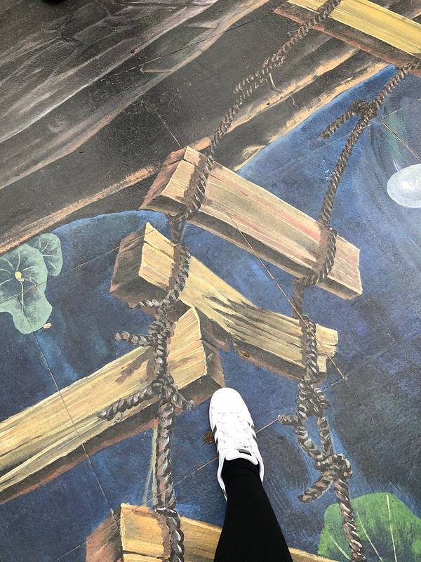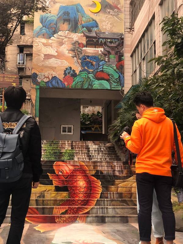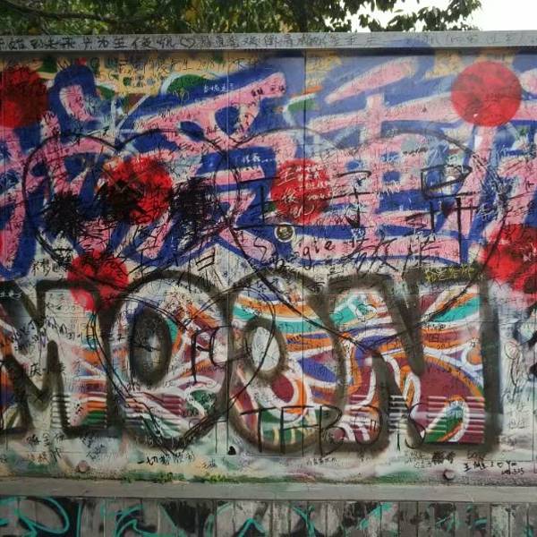 它的环境很古朴,甚至有的破旧,服务也特别简单,原始,每个角落都迷漫着一股怀旧气息~现在已经被各色游客挤占,真正到这里的重庆老人已被挤到角落里表情表情如若是我~我就会选择静静参观不去打扰,感受一下老重庆文化就好,何必去破坏一个如此美好的环境呢~强行融入,不仅呱噪,依旧不是属于你的表情表情你们觉得呢?接下来,我们准备找找有特点的涂鸦墙,拍点特写,在往上走,就来到了——四川美术学院,沿途不管是楼,还是墙,都是特别赞的涂鸦艺术品,只可惜,我最想找的“我爱重庆”已经被破坏成这个样子,看着从旁边路过的小年轻们,手握一只签字笔,不停的在上面画心留字,我很心痛,也很无奈,心痛那么美好的艺术品被破坏至此,难道你们就那么喜欢在墙上留名?圈了爱心,你们的爱情就一定会天长地久了吗?附一张最喜欢的合影呀!!!每个人都又高又瘦又美表情表情不接受反驳~哈哈哈哈哈哈,一位路过的小帅哥帮拍的,还教我们如何摆姿势,真是太圈粉了在学院对面,还吃到了有名的梯坎豆花,它和吉林的豆花一样,都是咸口的,原谅我们,都还是比较喜欢甜口的呀~你们可以尝尝,很多人都特别喜欢吃~说不定就适合你们的味蕾呢。之后我们就出发回酒店放行李了,轻轨倒公交,足足花了1个多小时,真的是崩溃的!!!重庆太大了,我想回柳州