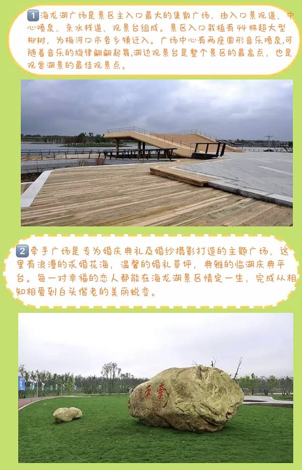 海龙湖 是梅河口目前最大室外娱乐场所,老少皆宜不分年龄限制 门票免费,交通便利,公交202免费直达,打车五块钱 建议游玩时间2——3小时