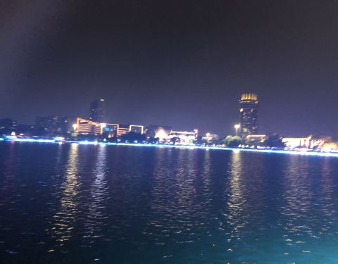 晚上散步经过 发现坐船游星湖的码头就在观礼台的下面 沿着梯级走到观礼台的高处观看星湖的夜景 非常漂亮
