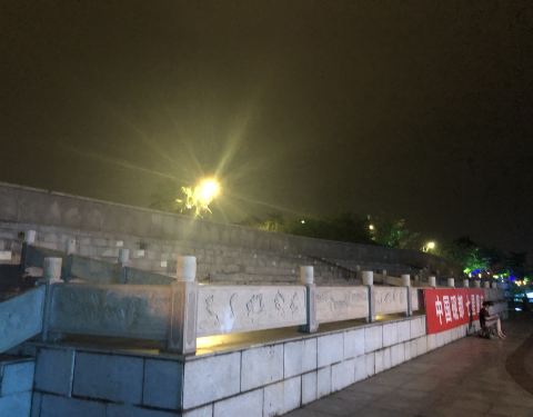 在星湖的西边中间比较宽阔的的位置建起了这个观礼台 面积蛮大的 晚上散步经过 发现坐船游星湖的码头就在观礼台的下面 沿着梯级走到观礼台的高处观看星湖的夜景 非常漂亮