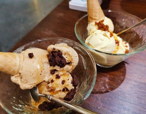 餐厅环境很好,经常排队,门口先是甜品区,卖冰激凌和饮料,里面是用餐区,餐品口味还行,厨房和服务...