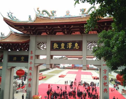 ...化园的大牌坊,就是进入妈祖祖庙新殿的大牌坊,牌坊前面是祖庙大型祭典和举行盛大活动的广场及观礼台