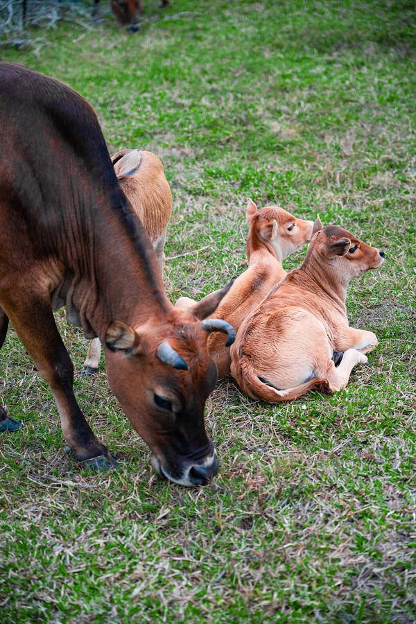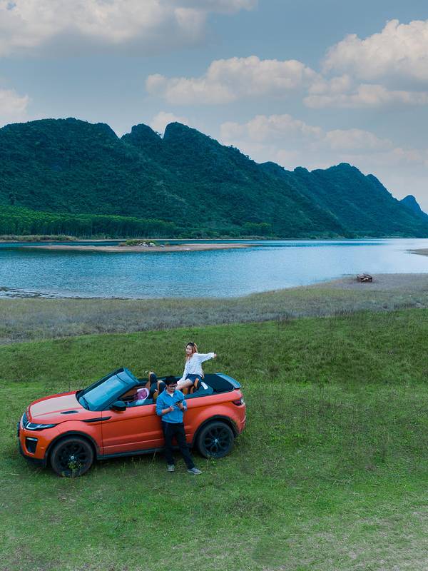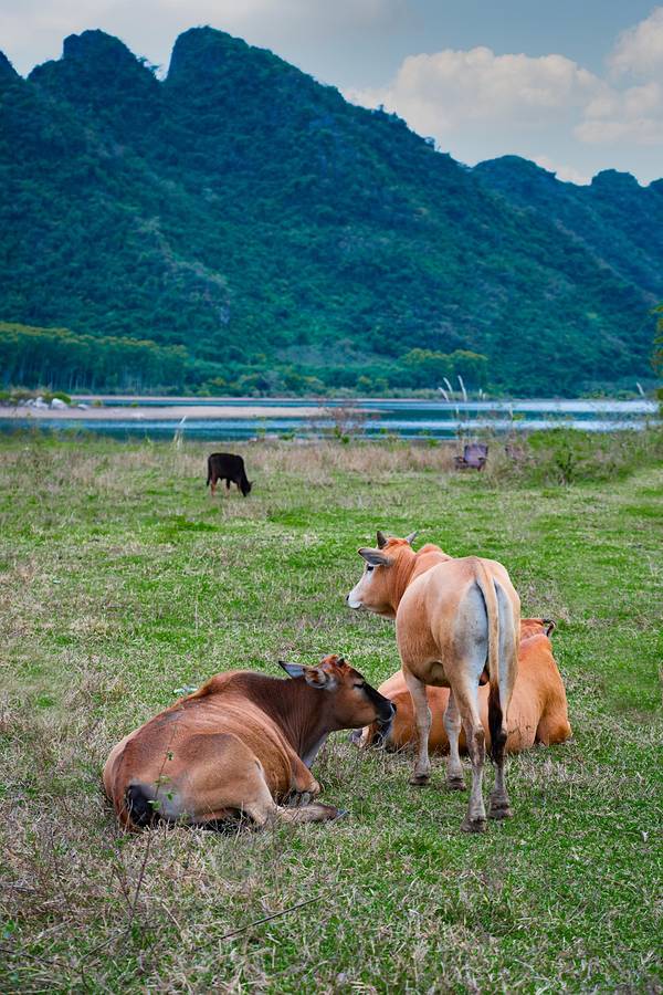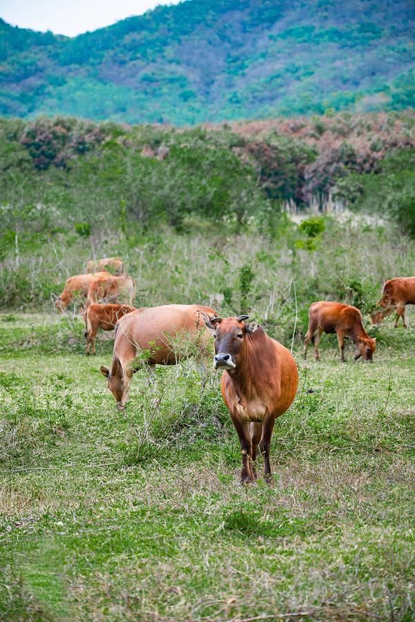 哈喽!这里是 “平行时空里的海南省桂林市” 哈哈哈哈~ 也是我整趟行程最期待的地方!在海岛能欣赏到海以外的地貌特色,真的惊喜又好奇。四个多月前刚去过桂林阳朔 ,所以抵达这里时真的有被震撼到!连绵的群山真的太像桂林山水了!山川湖泊的景色不挑天气,无论晴天阴天都会有不同的美,而且地理位置远离海边,地处东方和昌江的交界处,所以温度直线上升,体感终于不那么冷了…中年车模少女又开工了…牛牛一加入,就更有桂林的感觉啦。记住下面这头公牛!超级凶,我们只是看到上面的两头小牛牛很可爱,站近点拍了张照片,它就生气吼我们了,感觉再不逃下一秒就会用角顶我们…这块区域统称叫为 “俄贤岭” ,由九座峰组成,忽高忽低的造型误打误撞像极了桂林阳朔的地貌特征。 位于东方市的区域内,山脉的另一边就是昌江,山下的湖泊是 “大广坝水库” 的支流,也是海南第二大的水库,水质相当好,清澈见底。很多人都说这里火了之后就开始变成景区收费了,其实不是的。 √ 导航 “ 海南小桂林” 就能看到这片景色,是免费的!而且在定位附近有好几条小土路都可以直达湖边,路过的时候注意一下就好了。我们沿途就开进了两个地方拍了照。 √ 导航 “峨贤岭” 才是收费景区,门票80/人,车只能停门口,需要坐观光车入内,从地图上看收费区域是没有湖景的,反而没什么意思。这么美的地方,希望来这里露营的人走的时候都能把垃圾带走,草地上垃圾真的蛮多的…———————— 驶入深山前会有一个临时检查站,每辆车都需要停下开后备箱安检,不能带烟花爆竹都易燃物进山。沿途的景色就已经有小桂林的感觉啦!