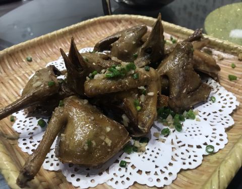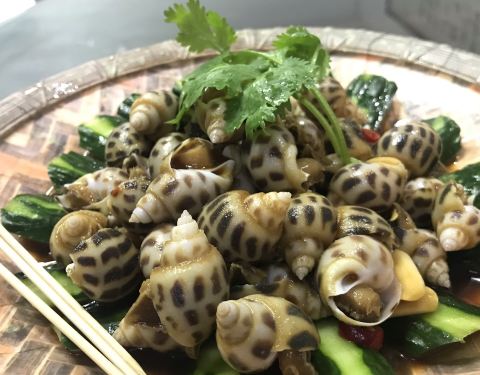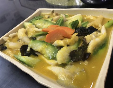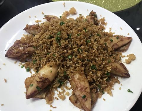 在朋友带路下来到了这家私房菜。 特色是吃海鲜刺身,但是必须提前订好吃什么鱼哦~ 在门口的玻璃窗看到刺身还挺新鲜哦~ 环境:粤式装修,大厅可以看到好大的狮子头 菜品: 【米香焗膏鱿】超推荐!米是炸过的,吃起来脆脆香香的好特别,膏鱿超级无敌香,入味。须有种烤过的鱿鱼丝的口感!太赞了! 【红糖糕】软糯,甜度适中,做饭后甜点,合适,要半打,刚好一人一小块! 【冰镇花螺】焯熟的花螺,冰镇之后,配酱油芥末,口感清爽,好吃。 【椒盐乳鸽】好吃,味道真不错 【胜瓜浸鱼肚】整桌唯一清单的菜(lol)瓜很新鲜,很甜,跟其他配料也很搭,喜欢。