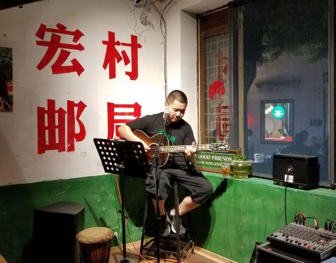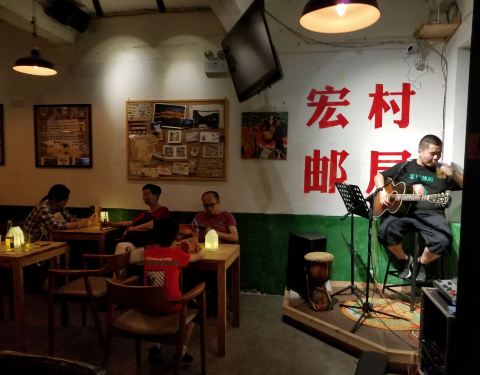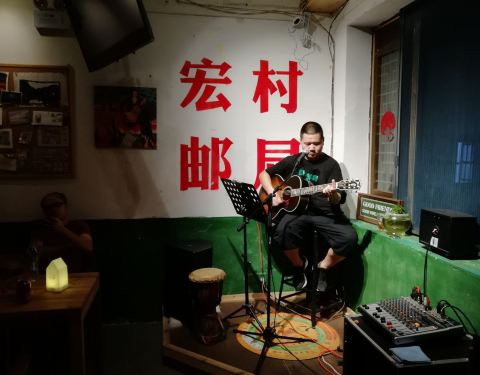 夜晚在宏村的老街上闲逛,意外发现宏村邮局里面传来歌手弹唱的音乐,进去一看果然是酒吧,哈哈……一间不务正业的邮局。 歌手唱歌很不错好听,音乐也不会太吵 酒的价格跟景区内其他几家酒吧比便宜不少,来宏村的朋友可以去坐坐。