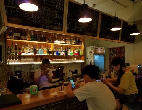 这里有啤酒、鸡尾酒和小吃。竟然是一间酒吧,还是有歌手驻唱的酒吧。气氛还很不错
