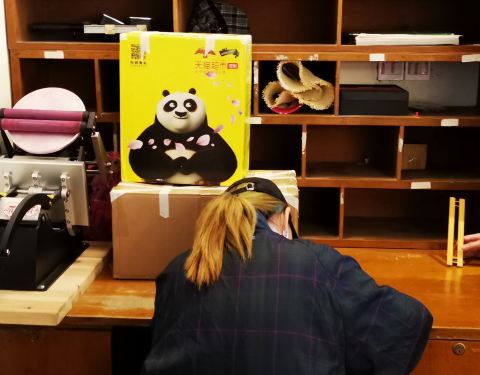 ”邮局内清香新茶、醇香咖啡充盈室内,有新意的文创产品和徽州特色产品琳琅满目