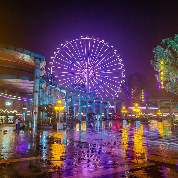 顾名思义,这里就是一座非常经典的室外游乐园,尤其是夜景堪称整个绍兴一绝,不仅项目丰富多彩,而且夜场活动也多,所以对于喜欢游览夜景的雄鹰而言自然是不能错过的。整个园区真的非常大非常大,据说占地面积就有500多亩,大致上分为时空之门、天幕大街、魔法花园、异域海湾、水晶城堡、酷玩世界、冒险峡谷、欢乐港湾、玄宇园等等的区域,强调“互动、演艺 、科技、体验”四大亮点。雄鹰与朋友们离开水之王国以后,沿着步道穿过桥梁就来到了酷玩王国玄宇园的入口。由于现在刚好是傍晚,天还没有黑,所以和朋友商量了下,先去玄宇园逛一逛,再去看其他区域的夜景。玄宇园是典型的越地园林式博物馆,充满了典雅和文化沉淀的越地园林建筑。这里有龙川书院、金紫堂等等的园林式建筑,走进这里,仿佛来到了意境深远的古园林里,神秘而又底蕴深厚。闲来无事,在廊桥畔、亭台里坐上一会儿,心情也会变得更舒服。穿过一片荷花池就来到了酷玩世界,一处处精彩的游玩项目就呈现在我们的面前。双龙竞速,首创坐舱式过山车与悬挂式过山车合二为一,运行高度41米,各自拥有20个座位。运行的时候上下两辆列车同时出发到达轨道最高处,再沿着长达831米的轨道快速滑行,就好像是两条巨龙在空中竞速一般,惊险刺激,真有种肾上腺狂飙的刺激感。高空飞塔,顾名思义,这种机器从中间的滑行架伸出 21个悬臂,各带动一个双人座椅绕竖直中心立柱旋转,同时滑动架又带动悬臂和座椅沿竖直中心立柱做升降运动。当升空到46米左右高度的时候,以 50km/h 速度绕中心立柱飞行,那种刺激感别提多带劲了。魔法花园,这是一个充满神奇魔法的,五彩斑斓的欢乐儿童世界。拥有高空揽月、魔法木马、梦幻飞塔等等项目,所以深受孩子们的喜欢。游览过诸多的网红项目以后,不妨到水晶城堡看一场精彩纷呈的演出。当夜幕降临的时候,一支乐队登场,一首首或激昂或抒情的音乐声响起,吸引了很多游客驻足,瞬间全场的氛围立马都不一样了。看了一会演出以后,夜幕也越发深沉,这个时候在漆黑夜幕的映衬下,那华灯齐放、流光溢彩的乐园也愈发美丽,美得令人心动不已。尤其是那建设总高度达88米的鉴湖之星格外璀璨,随着它缓缓地转动,再加上周边体验各类游乐设施的人们,整个现场仿佛陷入了欢乐的海洋。雄鹰与朋友们也尽情地投入到这快乐的氛围里,体验各种夜场项目。这样的体验,对于游览过东方山水乐园酷玩王国的朋友们来讲,恐怕都是毕生难忘的。 展开