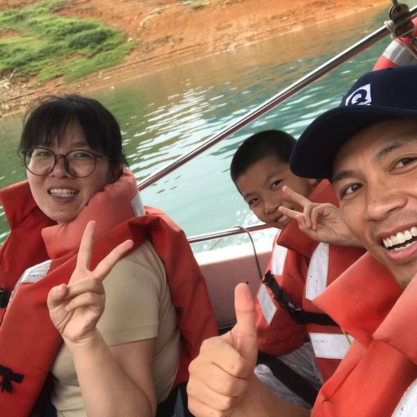免费的牂牁江风景区,没有过度开发,气温合适,人很少夫人出师不利,把脚扭了,我买了两根冷饮自制了冰敷包包船游览牂牁江驾船的本地大哥说水深达到100米石头上的线条都是无数年水流冲击后的杰作,不能不对大自然...