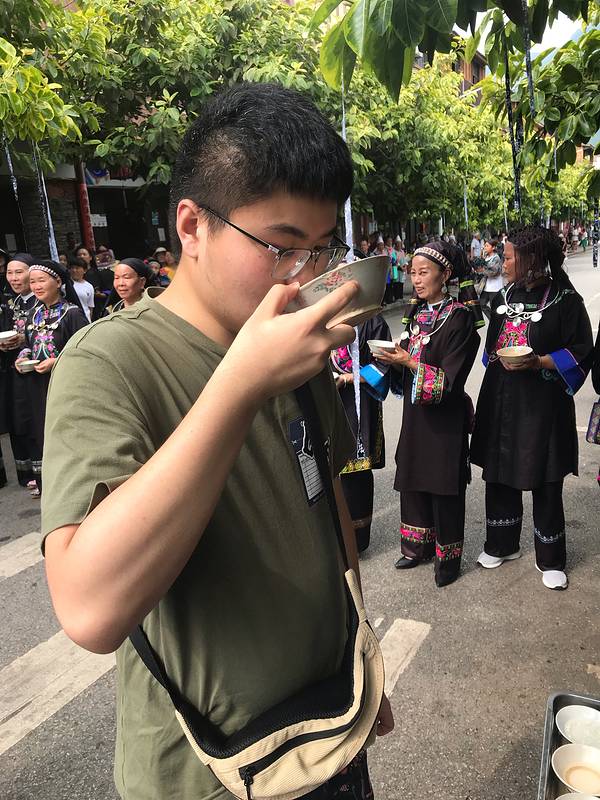 免费的牂牁江风景区,没有过度开发,气温合适,人很少夫人出师不利,把脚扭了,我买了两根冷饮自制了冰敷包包船游览牂牁江驾船的本地大哥说水深达到100米石头上的线条都是无数年水流冲击后的杰作,不能不对大自然心存敬畏超一线的江景房、山景房一线天,牂牁江面最窄处贵州的深山中藏有如此宽阔的江面是出乎我的意料,江水深幽干净,江面和缓宽阔,群山巍峨挺拔。船行其间静谧而安详,顿生幽思。发百代之深思,旅神游于天外!老爸喝酒入寨跟苗族小姐姐合影蒸大锅糯米少数民族的特殊欢迎方式——跳竹竿