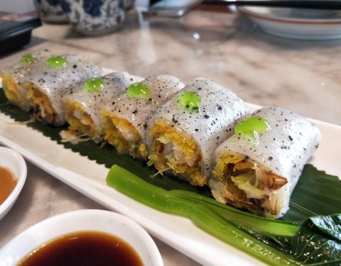 禄运在广州开了有好几家分店了,之前去过正佳广场那家,出品和味道都挺不错。去年年中的时候,同和金铂广场这边开了一家新店,正好在某银行团了一张50代100的代金券,找了个周末过来饮早茶撑台脚。 这家新开的禄运茶居位于同和金铂广场B座的3楼,店面还是挺大的。正佳那家店的装修是很广府风格的,这家则比较现代,装修方面不算太出彩 两个人点了5个点心。 金牌禄运虾饺皇,虾饺皮很薄,一口咬下去里面的料挺足的,里面的大虾仁很爽脆新鲜 六运特色有机肠 一共六小块,有点象红米肠,不过外皮不同,拌上上面放的绿色的酱料,味道不错 荔湾鲜虾艇仔粥 艇仔粥 料足,加上鲜虾,味道更鲜了 禄禄椰汁金球 很多客人来喝差都试的一个点心。做成小煎堆的样子,里面的椰汁甜而不腻,先喝完椰汁,再吃外面的皮,外皮脆脆香香的。不过一个人吃完一个也足够了,再多吃就会腻 香味芒果班戟 芒果控不要错过的甜点