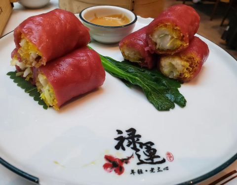 📍详细地址:金铂广场🏤三楼出电梯右转直走就是。 ⏰营业时间: 8:00-22:00 🥘菜品推荐: 金牌🥇🦐虾饺,翡翠饺子🥟,艇仔粥等,后面详细写。 🏡餐厅环境: 温馨,很赞👍🏻 💰人均消费: 150💰,物有所值。 👍口味评价: 老少咸宜 💘六运特色有机肠:强烈推荐!肠衣软糯,虾肉大颗很弹,包裹的炸物油香油香的,上面的水果酱增加了一些水果香。一大口咬下去,口感层次太丰富!!配了两种蘸酱:酱油和花生酱,推荐酱油,提鲜!四川口味实在不喜欢花生这种腻腻的口味的(吃多了会有点油腻,不过都吃粤菜了,还怕什么油腻?) 💘禄运虾饺皇:强烈推荐!粤式茶点必不可少的一道怎么能不尝!一共在三个店里都点了虾饺,禄运茶居是最满意的一家,饺皮晶莹剔透,虾肉足有三大颗,大满足!好好味~ 💘滋补美颜红枣糕:推荐!比果冻更糯的口感,两面是枣糕,中间是椰子糕,香甜不腻,可以一试哦~ 💘禄禄椰汁金秋:一般!被图片欺骗的菜!怎么说呢,就是我们四川的麻圆儿君本人啊,只是做大一倍再钻个洞,加上椰奶汁。成了一道新式改良菜,外壁厚厚的麻圆儿还是蛮香的,不过吃完其它的真的腻得吃不下了,椰奶汁还不错。 💘飘麦燕雪丹麦酥:不是很推荐!我一定是被名字蛊惑才点的这个,实名diss,酥皮很酥,内馅儿甜腻到炸裂,尝了一口就默默放下。从此我们就跟各种带酥字的食物杠上了,点啥踩啥雷,看到酥字就腻。请不爱吃这类糕点的小伙伴自动绕道带“酥”字的菜品。 💘金蒜豉汁蒸排骨:一般推荐!排骨的口味一般,清淡咸香。身为四川人怎么会喜欢这寡淡的味道,哈哈哈,不过被芋头惊艳到了,不是我们这里芋儿烧鸡的那种芋头,而是糖水里那种软糯的香芋,十分喜欢了~