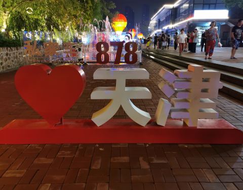 作为天津着力打造的以运河文化为背景的主题夜市,天津运河新天地也是独具特色,以热气球为造型的小吃售卖亭给整个夜市增添了车一样的美丽。