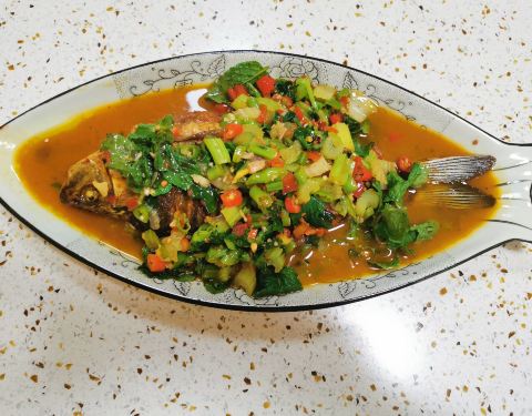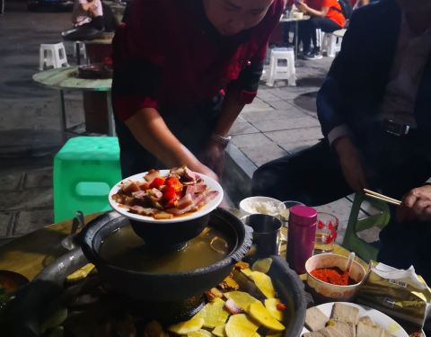 广东顺德美食之都出来觅食的我,黄果树瀑布留下的美食遗憾,居然在这里满足了。昨天误打误撞进店,虽然有几桌客人在,老板并没有因为我一个人而不待见,在不知道吃什么的情况下老板主动说我一个人吃土烙锅不划算,给我介绍一个怪噜饭,心想出来旅行吃炒饭…加了个炒野菜。结果老板端出来试了一下好好吃,马上跟隔壁桌的推荐,里面的豆子特别好吃,好大一碗被我一个女生全部吃完。想想炒饭都炒得这么好吃,其它的肯定不会差,跟老板打听了野生活鱼的做法。这不,今天来试红烧野生活鱼。虽然是红烧的,却保留了鱼本身的鲜嫩。好不好吃,不多说,直接看图。还有一点要说的是,出门在外吃东西最担心材料的新鲜和用的油,隔壁桌想点馒头,老板很老实的说今天的不太新鲜了就不给你们了。至于油,一看金灿灿的底汤,淡淡的菜籽味道,就知道肯定是云贵川常用的菜籽油啦。