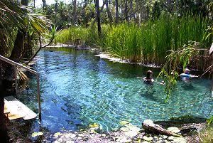 Bitter Springs, Katherine, NT。 The Katherine region is famous for its thermal pools but Bitter Springs, in Elsey National Park, is an area barely touched by man. Snorkel to observe the turtles as you drift with the current in the ethereal teal waters of this palm-fringed waterhole. Free entry.