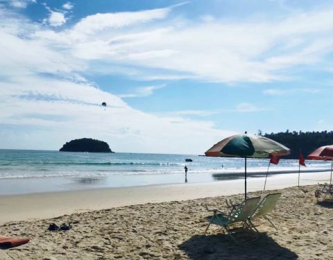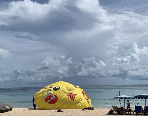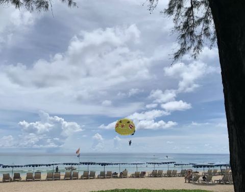 ...沙滩啊,还很凑巧的看到了皮卡丘的降落伞,很有意思,海边很多休息的沙滩椅,舒舒服服的,度假首选啦