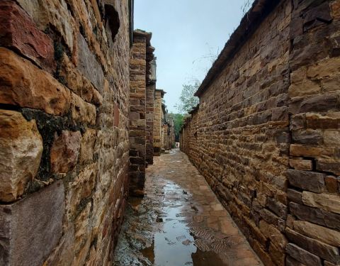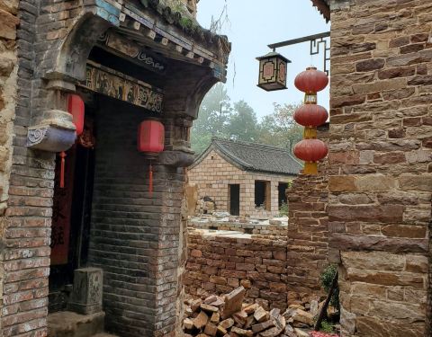 我国保存最完好的古建筑群落之一王硇村,便坐落在这片罕见的红土梯田之中。村子里建于明代的古石楼群,建筑风格南北融合,别具一格,整座村落古石楼鳞次栉比,俨然一座石砌的迷宫。