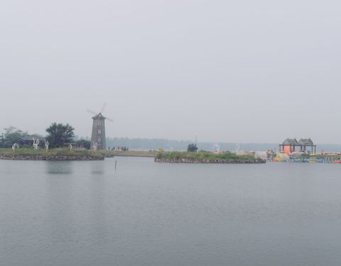 鸽子窝就是一个海滨公园,水上项目挺多的,很有特色。但是跟票上的效果有些差距。水浅,可以走到很远的地方,有人说看到了鱼和螃蟹,我没有看到。爬上小亭子看大海,心情挺不错的!