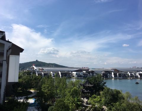 离融创茂很近,基本解决吃饭和小朋友玩的问题。房间设施都还是蛮新的,房间很大,湖景房视野很不错