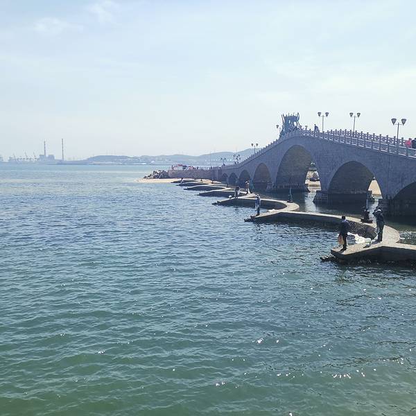 九龙湾公园位于威海中心城区九龙湾(杨家湾)南岸,西接海上公园,东临威海港,占地约千亩,海岸线长约2.6公里。这与海上公园隔着一条小河,河口有一座石拱桥相连。