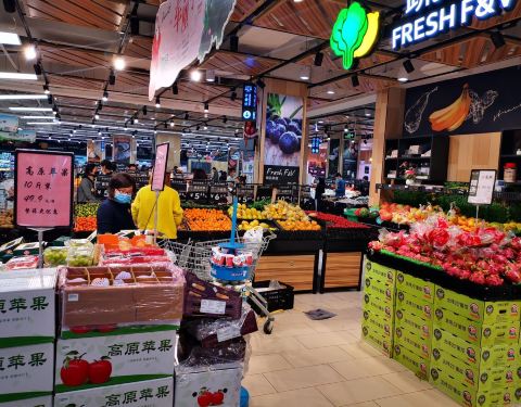 ...永辉超市买菜就过来了,门口的防护设施不错,有自动喷雾消毒,就是里面太冷清了,希望疫情快点过去吧
