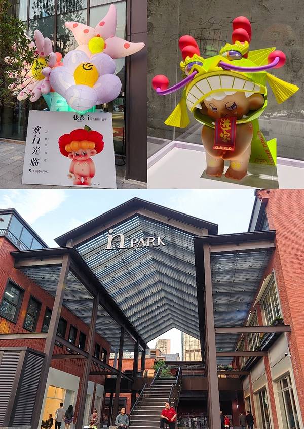 临平银泰inPARK街区开业首日,有音乐节、戏剧游园会、滑板王比赛、主理人市集等,还散落着各种艺术展,比如artin集合店有黑泥艺术展、意达的花儿艺术展;潮玩RumBaby肉宝展,可爱娇憨;森雨漫艺术画集展,煞是喜人。