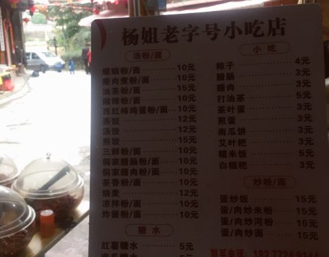 ...停在景区外边的,寨子里的路很小开进去也不方便,还是说说小吃店吧,在一条街巷的转角处,杨姐很热情