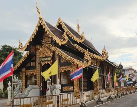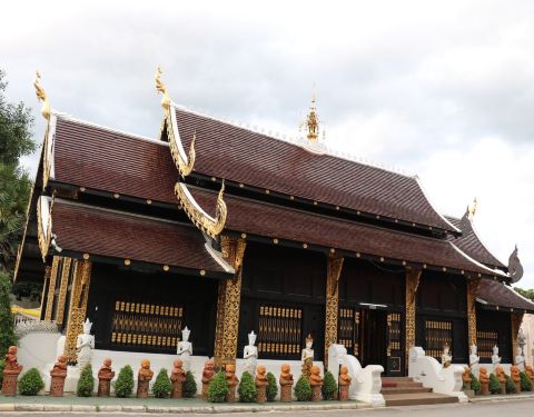 可不能小瞧了这座寺庙,据说已有数百年历史,跟清迈建城的历史一样悠久。现在是免费的,不属于重点旅游景观。旁边就是清迈的几个博物馆,和三王纪念碑。 整体外观还是兰纳风格,但屋顶呈黑色,金色包边,显得格外...