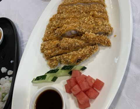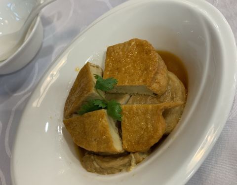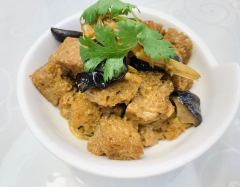 “素鸡”上面和下面完全2种口感,最奇怪的是口味,微辣。餐桌够大,餐椅稳,用餐舒适。总体是好的