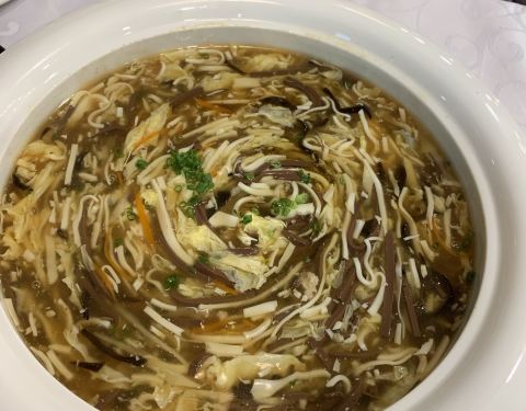[环境]二楼是大堂,明亮宽敞餐位间隔远,用餐环境好。餐桌够大,餐椅稳,用餐舒适。 [服务]餐桌不多,服务员都要叫几次才到,还需加强培训。供应的冷柠檬水是一败笔,知道调低空调促进用餐,该考虑到凉水不适合浓油赤酱的本帮菜。 【菜品】花了心思,却并没有别人评论的那么好,可能是节假日的超负荷经营吧? “红烧肉”不能点半份,几乎少人口的桌都要剩好多打包。太甜!上海的红烧是“浓”不是光甜就行。 “炸猪排”炸的缺口气,胡椒粉位浓了点。总体是好的。 “素鸡”上面和下面完全2种口感,最奇怪的是口味,微辣。 “酸辣汤”刀功是花了,灵魂的酸和辣差了点!醋不够香,胡椒不到位,让服务员拿了胡椒粉来好了不少,缺的醋的香光有酸味还是少了味道。 “米饭”以上所有菜都还行,好过许多饭店。可这米粉必须批评一下,又冷又硬。本帮菜没口热饭怎么吃哦!