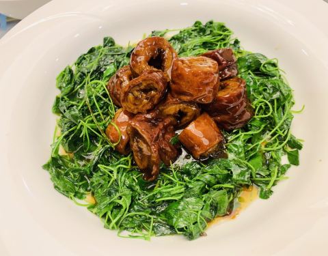 荠菜春卷,皮是类似凉皮的,口感清爽;1943海派菜,上海本帮菜,浓油赤酱非常地道