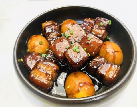 关山路好像要打造成“美食一条街”的感觉呀~~ 难得去关山路模式,周六晚上大概5:40到店的,四人位已经需要等位了,大概半小时内进去了。 一楼就是个门面,营业主要在二三楼,上来后才发现原来把隔壁“鲁小三”以前的楼上都盘下来了,果然餐饮生意不好做啊。 「酱蛋红烧肉」非常满意,典型的浓油赤酱有点甜,家人都吃的很满意,一盘里大概是10块肉配上4个半只的酱蛋,如果大桌人多酱蛋显然不够分。红烧肉蛮大块,一块就很ok了,多了会腻,希望五花肉能更肥瘦均匀些,精肉部分还是要想办法做的不柴。 「清炒河虾仁」河虾仁个头不大,量还行,口感也算Q弹,配上米醋非常棒,价位ok~~ 「碧绿圈子」圈子选取的部位不错,草头没有了改成的豆苗也很好吃,就是略油了。 「咸蛋黄锅巴」量不大,的确炸的很酥、不硬。 「自制荠菜馄饨」味道也蛮好,馄饨个头不小、内馅儿也不少,荠菜也没有根根拉拉,馄饨皮也不会很厚。 店员服务态度很不错,买单的时候觉得性价比还可以,适合附近居民区的定位。