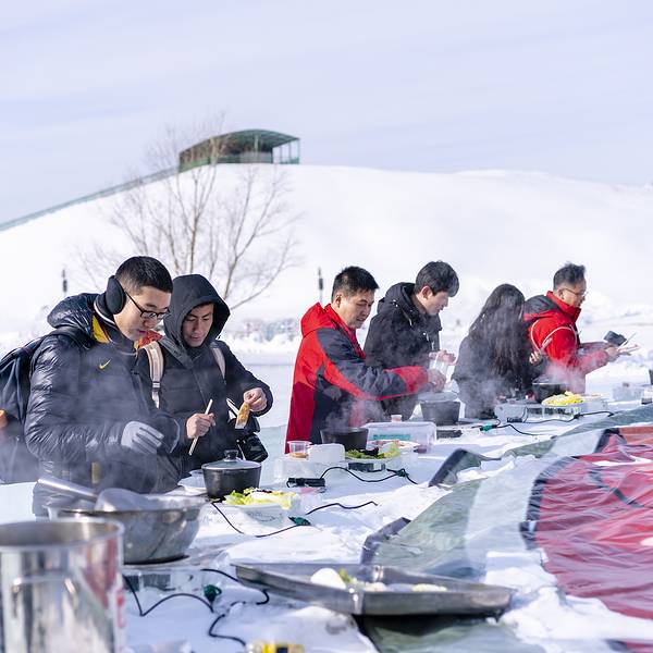 这般奇妙的体验价钱也不贵,一荤一素只需要30元。这可是货真价实的“冰”火锅哦中午的开胃菜是户外冰火锅!这可是货真价实的“冰”火锅哦!电炉子直接放在巨大的火锅冰雕上,盛肉片素菜的盘子就搁在冰块上,揭开盖子热气腾腾,倒上麻酱就开始饕餮吧!这般奇妙的体验价钱也不贵,一荤一素只需...中午的开胃菜是户外冰火锅!这可是货真价实的“冰”火锅哦!电炉子直接放在巨大的火锅冰雕上,盛肉片素菜的盘子就搁在冰块上,揭开盖子热气腾腾,倒上麻酱就开始饕餮吧!这般奇妙的体验价钱也不贵,一荤一素只需要30元。对了,现在这里还有个“欢乐冰火节激情火锅宴”的抖音挑战赛活动,只要在冰火锅或者中国马镇冰火节现场合拍,就能免费领取一份食材或饮料,还可能获得丰厚奖品哦! 展开