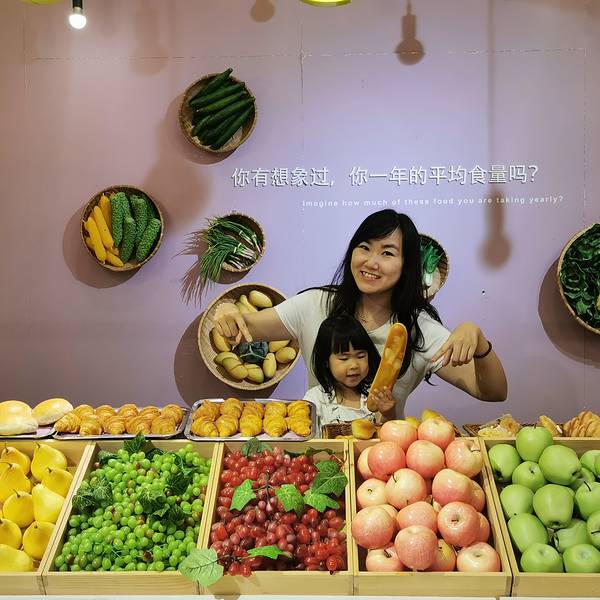 这里有很多种大号食物,带小孩来拍照很有趣!