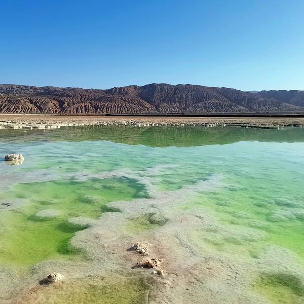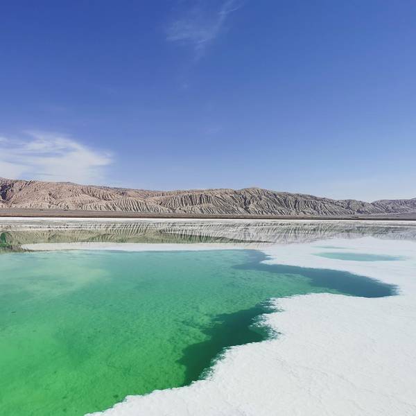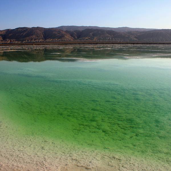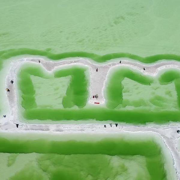 茫崖翡翠湖属于硫酸镁亚型盐湖,是海西州第三大人工湖,出产钾、镁、锂等多种元素。经过钾肥工人的多年养护,终于把湖泊颜色“盘”成了如今清绿透亮的翡色,浅浅的湖色温润如玉,色泽动人。