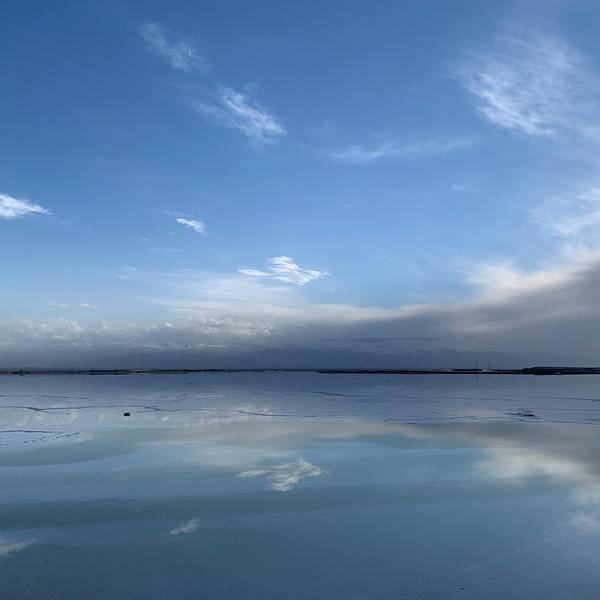 茫崖翡翠湖好大,而且时间刚好是下午3点多,风小,天空之境效果非常好。人生就是这样有遗憾、有惊喜7月22日 从大柴旦出发进入戈壁沙漠无人区,路上竟然遇到沙漠大雨,广东雨神随行。本来计划入疆的,到了茫崖看见路牌写着“茫崖翡翠湖”,就拐过去看看。