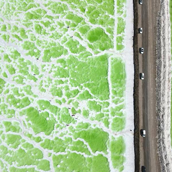 这一片片人造的海,用青绿的池水倒影出空旷无际的湛蓝天空。青海的盐湖都较为相似,却又各有不同,湖水的颜色因为矿物质含量的不同也有略微的差异,茫崖翡翠湖比起大柴旦翡翠湖,规则分布的盐田少了一份天然的野性,却显得更为开阔,连绵到望不到天边。茫崖翡翠湖茫崖翡翠湖茫崖翡翠湖茫崖翡翠湖 而我们总归渐渐熟悉了盐湖的模样,已然不会太过欣喜。党叔说,其实,最精彩都是放到最后,等到了格尔木,看了察尔汗盐湖后,之前的盐湖就都不算什么了。