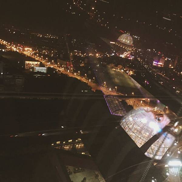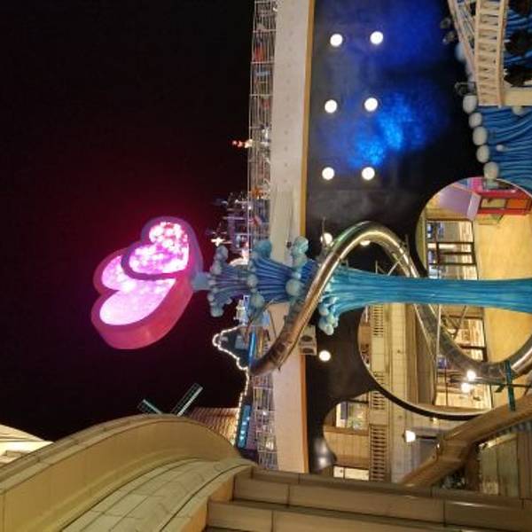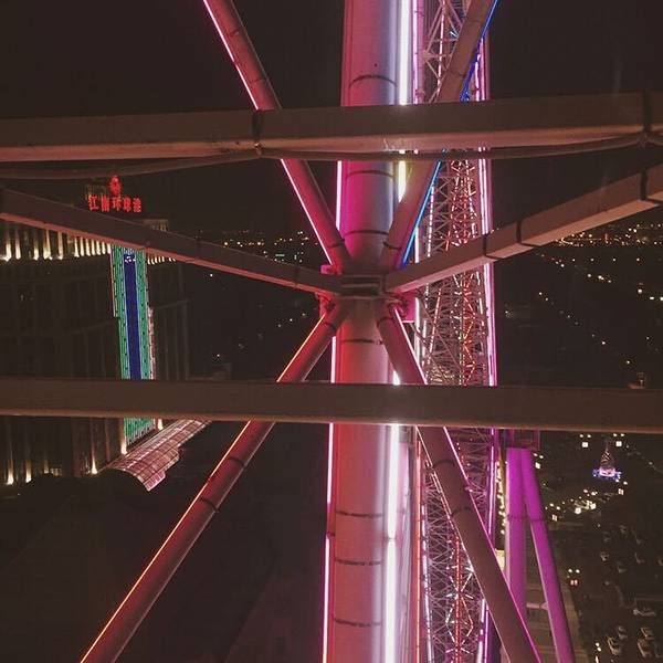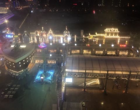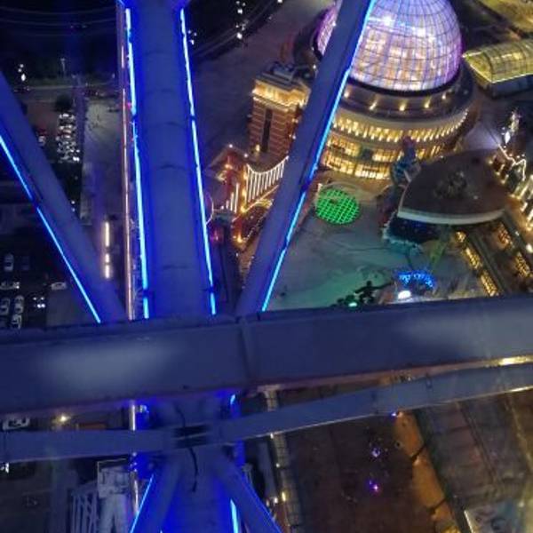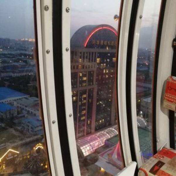 孩子要坐就陪同坐一下,夜晚灯光很美,到高处还是有点小害怕,不过视野开阔。下雨后里面会飘小雨。