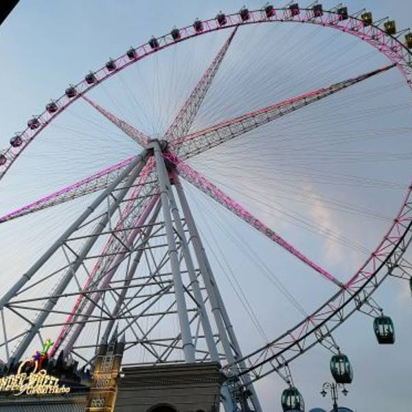 位于常州,号称国内最高的屋顶摩天轮!高400米,厢位有40个,内有空调和音乐,可以在轻松的环境里坐摩天轮看城市美景!晚上去最好!灯火辉煌!