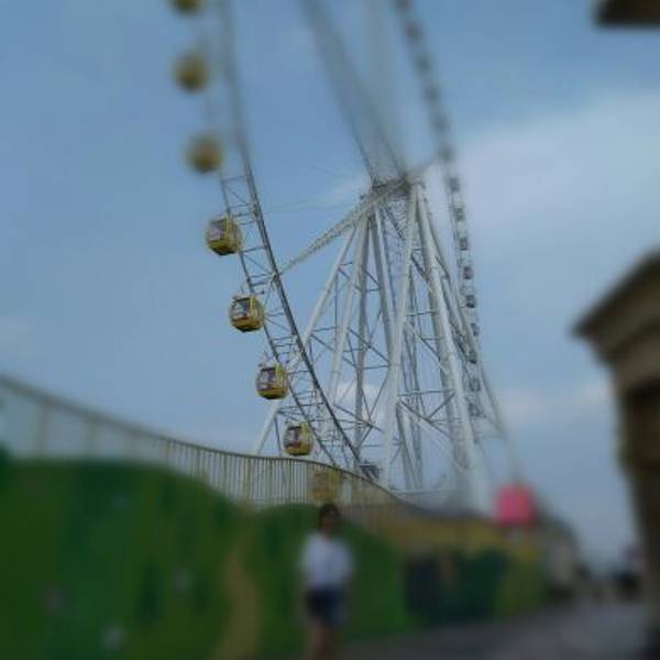 这里有很多玩的东西,最显眼的就是摩天轮了,其他的游玩项目也挺多的,外观像是汇集了世界各国建筑风格一般
