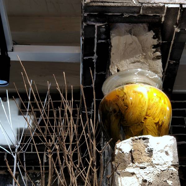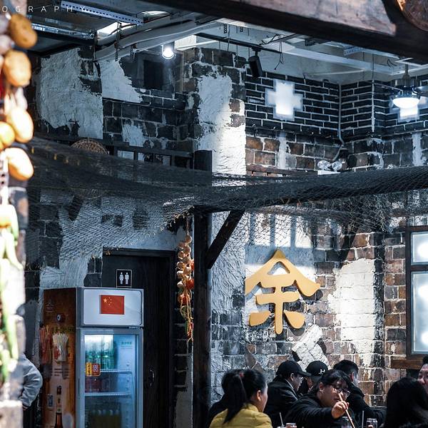 如今的致民路,新新旧旧,多了许多家店,但在致民路吃饭,依然有种老成都邻里街坊的感觉。店铺是浓浓渔家老屋风,木门、石墙、斗篷、蓑笠……柱子上悬挂着莲藕、小南瓜,从锅里冒出的烟氤氲在整个环境中。