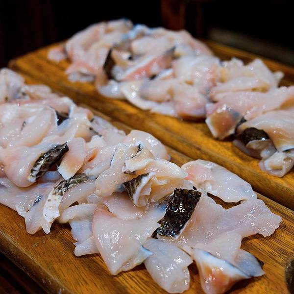 招牌鱼火锅,当然少不了鱼,刺多的花鲢、少刺的裸斑、无刺的红砂江团罗非鱼乌鱼、只有一条主刺的三角峰。