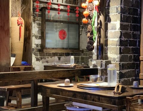 装修是复古的老房子风格,墙上挂着渔夫的簑衣、斗笠、渔具、辣椒......和店名很搭!地址在致民路48号附2号,地铁新南门站B口出步行50米就看到啦