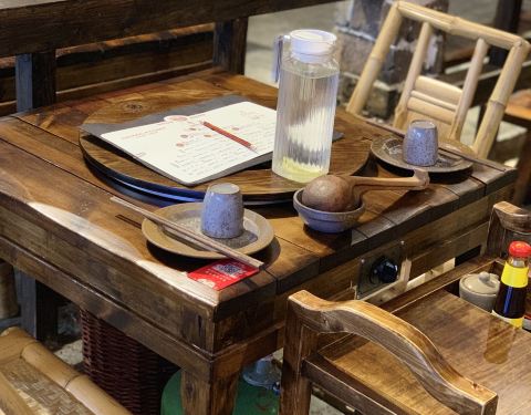 喜欢它家的装潢风格,复古怀旧风,木质的餐桌,长凳,颇有老成都的赶脚