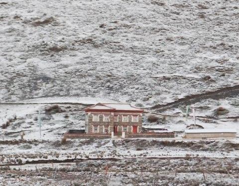 玉岭雪山,海拔约有5400米,位于康定与新都桥中间,在折多山附近,跑马山后面。折多山向下的盘山路正好是迎着玉岭雪山,“之”字型的回头弯,越往下走感觉离雪山越近。隐约能看到尖耸的山体和若隐若现的积雪,薄纱般的飘逸在山腰。