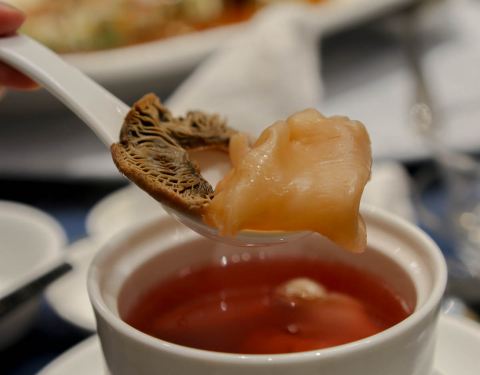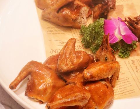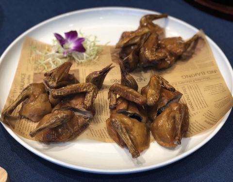 先看看这道开胃泡菜梗,两尾小金鱼欢快游弋,一盏清莲随波逐流。中间的时蔬梗如一座青山,正所谓清水出芙蓉,碧波任逍游,直接将一道菜“演活”了。 松花鱼皮只需轻轻凉拌,便将鱼皮最好的一面呈现给大家,鱼皮花纹细腻,口感香脆,非常开胃,而皮蛋也是我喜欢的。 鲨鱼拼三文鱼直接将这桌菜的水准上升到了一个更高的位置。三文鱼饱满鲜嫩,鲨鱼则作成冻,晶莹剔透,口感弹滑。与土笋冻有异曲同工之妙,不过鲨鱼肉的口感个人可是更加喜爱。 甘树子蒸大黄鱼,黄鱼的价格不菲,而大黄鱼更不要说了。甘树子即是青花椒,铺在黄鱼之上,加入佐料同蒸,黄鱼肉质鲜美,略带一点辛香,着实大饱口福。 滋补土龙汤为店内的招牌之一,土龙自古便是民间养生上品,大补。土龙与猪尾骨同炖,汤头浓稠,而这份汤中的秘诀还在于加入了固本酒。这种添加了人参、熟地黄、生地黄、麦门冬等补品的药酒,味道香浓。整个汤头喝完神清气爽,一下子身子就暖了起来。 发财好事,由一道经典闽南菜改良而来,发财与“发菜”谐音,好与“蚝”谐音,原本以发菜筑底,上面放上蚝干、瑶柱、鲜鲍等,光看这些材料都让你赞不绝口,味道自然是鲜上加鲜。不过由于发菜快被吃成保护海生物,只能以上好紫菜替代了。 摆盘精致的脆皮乳鸽也是值得推崇的,乳鸽烤的恰到好处。表皮油而不腻,鸽肉香而不骚,酥香柔嫩,鲜咸适口。 鳗鱼干闷猪脚,你没有听错,这道菜简直是山珍和海味的完美结合。松软的鳗鱼和脆嫩的大猪脚同煲一锅,让鳗鱼独特的香气与猪脚的油香混杂,每一口吃的都是精华。 古法鱿鱼膏炒面,鱿鱼膏即是鱿鱼的墨汁了,这道菜在厦门,还真没有很多店家做的出来,主要是原材料太不好搞了,而花渐开得益于五家海敢小鱿鱼,可以肆无忌惮地将这道菜做成任点任吃。鱿鱼膏炒面与黑酱意大利面有点类似,只不过,收干的鱿鱼膏炒面口感更好,更具中国特色。 人手一盅的金线莲肉汁炖响,南方独有的金线莲,清热利湿,是福建这边炖肉的首选之一。每到夏天,想起金线莲炖肉的滋味,口水都要流出来了。整个汤头鲜甜可口,喝完汤还不忘将盅里的肉一并吃完,真是美味。 甜品是什么呢?你一定猜不到,小时候都吃过的石花,淋上蜂蜜,是不是很怀旧?不过仔细看,这石花冻里,可是有棵石花草噢。冰冰凉凉的石花冻,吃起来特别解暑。 最后,必须配上21年的洋酒,完美。 【服务】