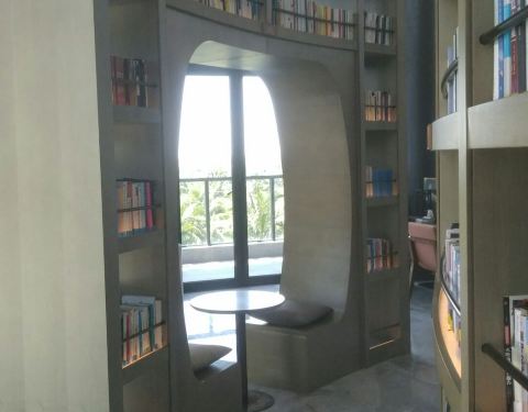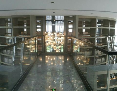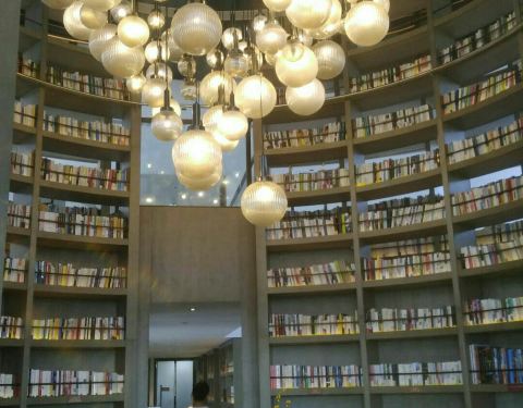 从四路车终点站梦幻水城下车后往里走一百米就到了!很有特色的文化示范区,来的是物业配套的图书馆,很有特色,很小但很精致。古筝的音乐缭绕在耳旁,安静的环境,看书成了种享受!每天五十位读者,关注二维码预约